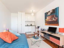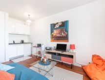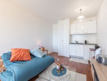 Studio 31 m2 au 1er étage. Aménagement agréable: séjour/salle à manger avec 1 divan-lit double (140 cm, longueur 200 cm), TV (écran plat), chauffage électrique. Cabine avec 1 divan-lit double (140 cm, longueur 200 cm). (2 plaques à induction, grille-pain, bouilloire électrique, four micro-ondes, cafetière électrique). Salle de bains, WC séparé. Chauffage électrique. Très belle vue sur la mer. A disposition: Internet (Connexion WIFI, gratuit). Place de parking No 60. Veuillez noter: logement non-fumeur. Détecteur de fumée.- Caractéristiques de l'hébergement