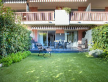 Apt 2 pièces 40 m2, au rez-de-chaussée, situation sud. Clair, aménagement agréable et moderne: séjour/salle à manger avec 1 divan-lit (140 cm, longueur 190 cm), TV (écran plat), air-conditionné. Sortie sur le jardin, sur la terrasse. 1 chambre avec 1 grand-lit (1 x 140 cm, longueur 190 cm). Sortie sur le jardin, sur la terrasse. Cuisine ouverte (four, 3 plaques à induction, grille-pain, bouilloire électrique, four micro-ondes, congélateur, cafetière électrique). Douche/WC. Chauffage au gaz. Terrasse 10 m2, situation sud, jardin 80 m2, situation sud. Meubles de terrasse. Vue sur le jardin. A disposition: lave-linge, fer à repasser, sèche-cheveux. Internet (Connexion WIFI, gratuit). Place de parking (1 Voiture). Veuillez noter: 1 animal/ chien autorisé. Détecteur de fumée. Annonce d'un particulier (art 155, IV du CGI).- Installations