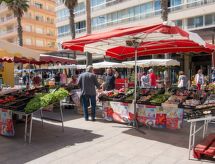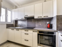 Apt 2 pièces 44 m2 au 2ème étage, situation est. Aménagement très fonctionnel et agréable: séjour/salle à manger 13 m2 avec TV (écran plat). Sortie sur la terrasse, orientée est. 1 chambre 9 m2 avec 1 grand-lit (1 x 140 cm, longueur 190 cm). Entrée avec 1 x 2 lits superposés (90 cm, longueur 190 cm). Cuisine (four, lave-vaisselle, 3 plaques à induction, grille-pain, bouilloire électrique, four micro-ondes, congélateur, cafetière électrique, Capsules pour machine à café (Tassimo)). Douche, WC séparé. Air-conditionné. Petite terrasse 8 m2, situation est. Mobilier de balcon. Très belle vue sur la mer. A disposition: lave-linge, sèche-linge, fer à repasser. Internet (Connexion WIFI, en sus). Veuillez noter: détecteur de fumée.- Caractéristiques de l'hébergement