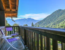 "Le Muguet 1", apt 4 pièces. Logement idéal pour 4 adultes + 2 enfants. Aménagement confortable: séjour/salle à manger avec TV, écran plat et poêle à bois. 1 chambre avec 1 grand-lit (180 cm, longueur 200 cm). Sortie sur le balcon, orientée sud et orientée ouest. 1 chambre avec 1 x 2 lits superposés. 1 chambre avec 1 grand-lit (140 cm, longueur 200 cm). Sortie sur le balcon, orientée sud et orientée ouest. Cuisine ouverte (four, lave-vaisselle, 4 plaques vitrocéramiques, grille-pain, four micro-ondes, cafetière électrique, Capsules pour machine à café (Nespresso) (NON INCLUSES), appareil à raclette, service à fondue (fondue chinoise, fondue au fromage)). Douche/WC, WC séparé. Balcon, pelouse. Meubles de terrasse, barbecue, chaises longues. Belle vue sur les montagnes. A disposition: sèche-cheveux. Internet (Connexion WIFI, gratuit). Place de parking (2 Voitures). Veuillez noter: logement non-fumeur. Le poêle fonctionne avec des pellets mis à disposition par le propriétaire.- Installations