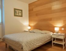 Apt 3 pièces 48 m2 au 2ème étage. Séjour/salle à manger avec TV (écran plat). Sortie sur le balcon. 1 grande chambre avec 1 grand-lit (140 cm, longueur 190 cm), salle de bains. 1 chambre avec 1 x 2 lits superposés (90 cm, longueur 190 cm). Sortie sur le balcon. Cuisine ouverte (four, lave-vaisselle, 4 plaques à induction, grille-pain, four micro-ondes, cafetière électrique). Douche, WC séparé. Balcon 5 m2, situation nord-ouest. Belle vue sur les montagnes. A disposition: Internet (Connexion WIFI, en sus). Place de parking No 1 en sous-sol à 500 m. Veuillez noter: logement non-fumeur. TV seulement FR. Détecteur de fumée.- Caractéristiques de l'hébergement