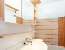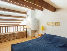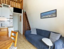 Apt 2 pièces 40 m2 au 2ème étage, situation sud-est. Aménagement confortable: séjour avec TV (écran plat). 1 petite chambre avec 1 x 2 lits superposés (90 cm, longueur 190 cm), 1 couchage (90 cm, longueur 190 cm). Coin cuisine (four, lave-vaisselle, grille-pain, bouilloire électrique, congélateur, cafetière électrique). Salle de bains, WC séparé. Pas de chauffage. À l'étage supérieur: (escalier raide) cabine ouverte avec 1 grand-lit (140 cm, longueur 190 cm). Belle vue sur la mer. A disposition: lave-linge, fer à repasser, sèche-cheveux. Internet (Connexion WIFI, en sus). Place de parking No 33. Veuillez noter: logement non-fumeur. TV seulement FR. Détecteur de fumée.- Caractéristiques de l'hébergement
