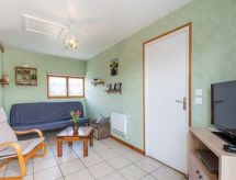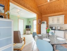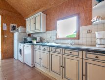 Maison en bois individuel "Le Petit Chalet". À 250 m du centre de La Haye d'Ectot, à 2.5 km du centre de Barneville-Carteret, à 35 km du centre de Cherbourg, à 4.2 km de la mer, à 4.2 km de la plage. A usage privé: terrain 800 m2 (clôturé) avec pelouse. Accès en voiture (20 m chemin non goudronné). Place de parking (pour 2 voitures) sur le terrain. Magasins 2 km, supermarché 2 km, plage de sable "Barneville" 4 km. Terrain de golf (18 trous) 5.5 km.Interior