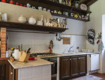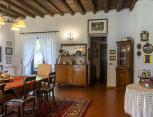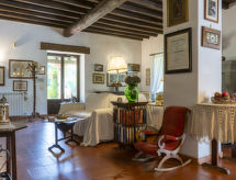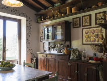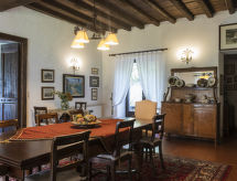 À 3 km de Carbognano: Cette ancienne ferme se situe sur le territoire de la Tuscia à 3 km de Carbognano et 7 km de Caprarola, à 30 minutes de Rome et de l'autoroute. La zone est riche en précieux vestiges étrusques et romains et compte de nombreux bourgs médiévaux et jardins à l'italienne. La ferme a été réaménagée en respectant les caractéristiques et matériaux d'origine dont les sols en "cotto" et les plafonds aux poutres apparentes. L'aménagement intérieur a conservé son authenticié avec des meubles du 19e siècle et quelques pièces plus anciennes. Petit terrain de football. Belle maison de campagne "Le Querce", de 2 étages. Situation isolée, tranquille, ensoleillée. A usage privé: terrain 3 ha (clôturé) avec pelouse et arbres, piscine (7 x 15 m, profondeur 80 - 300 cm, disponibilité saisonnière: 01.Jun. - 30.Sep.). Douche extérieure, meubles de jardin. Infrastructures de la Maison: système d'alarme. Place de parking (pour 3 voitures). Magasin d'alimentation 2 km, supermarché 2 km, restaurant 2 km, bar 2 km, centre thermal "Terme Dei Papi" 25 km, baignade en lac "Vico" 7 km. Tennis 2 km. Attractions à proximité: Villa Farnese 5 km, Caprarola 7 km, Viterbo 18 km, Sea and Beach 60 km, Roma 60 km, Orvieto 60 km. Les lacs connus sont facilement accessibles: Bolsena 40 km, Vico 20 km. Veuillez noter: voiture recommandée. Le propriétaire n'accepte pas les groupes de jeunes.Interior