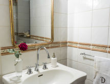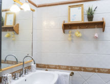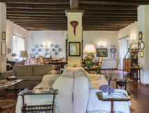 Villa 5 pièces 600 m2. Spacieux et clair, aménagement confortable et à l'ancienne: grand séjour/salle à manger 100 m2 avec cheminée, TV (satellite), écran plat et chaîne stéréo. Sortie sur le jardin, sur la loggia. Grande cuisine (5 plaques de cuisson, four, lave-vaisselle, four micro-ondes, congélateur, cafetière électrique) avec table pour les repas. Sortie sur le jardinet. WC séparé. À l'étage supérieur: 1 chambre avec 1 lit et 1 grand-lit. 1 chambre double avec cheminée, douche/bidet/WC, double vasque, TV et écran plat. 1 chambre double. 1 chambre double avec 2 lits, 1 lit double, TV et écran plat. Douche/bidet/WC. Chauffage au gaz. Mobilier confortable de style campagnard. Jardinet 80 m2, jardin. Meubles de terrasse, barbecue. Très belle, sur le jardin. A disposition: lave-linge, fer à repasser, sèche-cheveux. Internet (Connexion WIFI, gratuit).- Installations