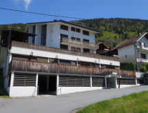"Le sporting", apt 2 pièces 39 m2. Séjour/salle à manger avec 1 divan-lit double (140 cm), TV. Sortie sur la terrasse, orientée sud. 1 chambre avec 1 x 2 lits superposés (90 cm), 1 grand-lit rabattable (140 cm). Sortie sur la terrasse. Coin cuisine (four, 3 plaques à induction, grille-pain, bouilloire électrique, cafetière électrique, combiné micro-ondes). Bain/WC. Chauffage au fuel. Grande terrasse. Meubles de terrasse. Vue sur les montagnes. A disposition: sèche-cheveux. Internet (Connexion WIFI, en sus). Place de parking (couvert, 1 Voiture). Veuillez noter: TV seulement FR. Détecteur de fumée.- Caractéristiques de l'hébergement
