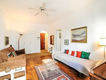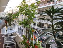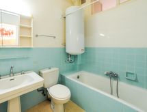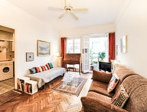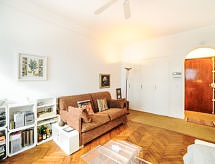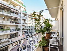Studio 27 m2 au 2ème étage. Aménagement fonctionnel et confortable: séjour/salle à manger avec rideau avec 1 divan-lit double (140 cm, longueur 190 cm), TV (écran plat). Sortie sur le balcon. Cuisine (4 plaques de cuisson, four micro-ondes, congélateur, cafetière électrique) avec table pour les repas. Sortie sur le balcon. Bain/WC. Chauffage. Balcon 6 m2. Mobilier de balcon. Vue sur la localité. A disposition: lave-linge, fer à repasser, sèche-cheveux. Internet (Connexion WIFI, gratuit). 06088010831WF- Installations