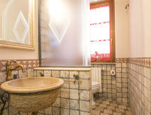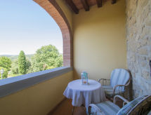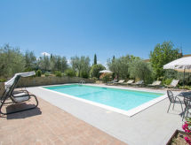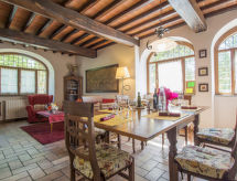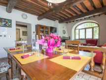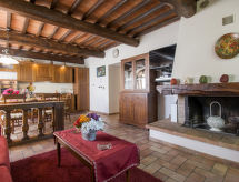 Maison rustique "Le Terrazze", de 2 étages, mitoyenne. À 4 km du centre de Monte San Savino, à 5 km du centre de Civitella Val di Chiana, à 500 m du lac. En commun: terrain 2 ha, étang naturel. A usage privé: terrain 600 m2 (clôturé), jardin pelouse et arbres, piscine (12 x 5 m, disponibilité saisonnière: 09.Avr. - 30.Sep.). Douche extérieure, ping-pong, tonnelle, meubles de jardin. Infrastructures de la Maison: accès internet. Petit-déjeuner et Demi-pension possible sur demande (en sus). Sur demande possibilité d'achat avant l'arrivée. Place de parking sur le terrain. Magasins, restaurant, bar 600 m, gare ferroviaire "Albergo" 1 km. Centre équestre 700 m. Attractions à proximité: Arezzo 15 km, Montepulciano 40 km, Equestrian Center Arezzo 10 km. Les lacs connus sont facilement accessibles: Trasimeno 50 km. Veuillez noter: possibilité de pêche (autorisation nécessaire) (en sus). Vente locale de produits de la ferme. Le propriétaire habite sur le même terrain. Animaux dans le voisinage.Interior