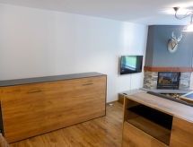 Appartement proche du torrent résidence "Le Torrent". Dans le haut de la station de Montana, en bordure de la localité, à 2.1 km du centre de Montana, dans une impasse. Infrastructures de la Maison: ascenseur, local pour les skis, chauffage central, lave-linge, sèche-linge (en commun, en sus), étendoir à linge. Supermarché 2 km, restaurant 2 km, bar 2 km, boulangerie 50 m, arrêt de bus "Clinique Lucernoise" 70 m. Remontées mécaniques 370 m.Interior