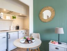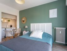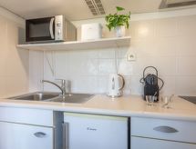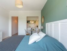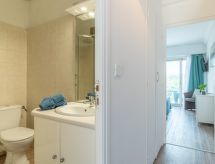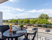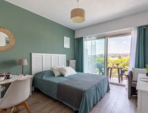 Studio 22 m2 au 3ème étage, situation ouest. Aménagement fonctionnel et confortable: séjour/chambre à coucher avec 1 grand-lit (1 x 160 cm, longueur 200 cm), TV (écran plat), air-conditionné. Sortie sur la terrasse. Coin cuisine (2 plaques de cuisson, grille-pain, bouilloire électrique, four micro-ondes, cafetière électrique). Douche/WC. Chauffage. Terrasse 8 m2, situation ouest. Mobilier de balcon. Vue sur la mer. A disposition: fer à repasser, sèche-cheveux. Internet (Connexion WIFI, gratuit). Veuillez noter: maison non-fumeur. 1 animal/ chien de petite taille autorisé. Détecteur de fumée. Annonce d'un particulier (art 155, IV du CGI).- Caractéristiques de l'hébergement