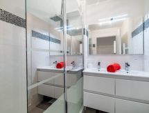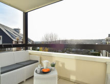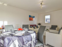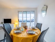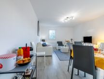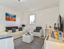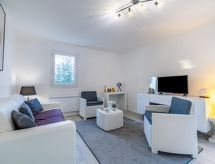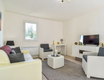 Apt 3 pièces 52 m2 au 1er étage, situation sud. Clair: séjour/salle à manger avec 1 divan-lit double (1 x 140 cm, longueur 190 cm), table pour les repas et TV (écran plat). Sortie sur le balcon. 1 chambre avec 1 x 2 lits superposés (90 cm, longueur 190 cm). 1 chambre avec 1 lit double (1 x 140 cm, longueur 190 cm). Petite cuisine (lave-vaisselle, 2 plaques vitrocéramiques, combiné micro-ondes). Douche, WC séparé. Balcon 7 m2. Mobilier de balcon. A disposition: lave-linge, sèche-linge. Internet (Connexion WIFI, gratuit). Place de parking. Veuillez noter: réfrigérateur sans compartiment congélateur, logement non-fumeur. Détecteur de fumée, sans ascenseur.- Caractéristiques de l'hébergement