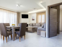 Triopetra à 10 km de Akoumia: Belle villa moderne, luxueuse "Lefkopetra", 120 m au dessus du niveau de la mer, année de construction 2017. Dans le bas de la station d'Akoumia, dans la localité, à 18 km du centre de Spili, en bordure de la localité, à 45 km du centre de Rethymno, excellente situation: centrale mais tranquille, zone avec peu de trafic, à 2 km de la mer, à 2 km de la plage. A usage privé: terrain 120 m2 (clôturé), piscine (45 m2, disponibilité saisonnière: 01.Mai. - 31.Oct.). Douche extérieure, meubles de jardin, barbecue. Change de linge 2 fois par semaine. Changementde linge de toilette 2 fois par semaine. Place de parking (pour 3 voitures) près de la maison. Magasins 10 km, supermarché 10 km, restaurant 10 km, bar 10 km, boulangerie 10 km, café 10 km, plage de sable "Triopetra" 2 km. Attractions à proximité: Phaistos Minoan Palace 30 km, Agios Pavlos 3 km, Agia Galini 12 km, Preveli Beach 7 km, Matala 30 km. Veuillez noter: voiture recommandée. "L´appartement se trouve dans une zone de circulation limitée".Interior