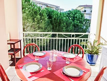 Apt 3 pièces 48 m2 au 2ème étage. Aménagement agréable et moderne: séjour/salle à manger avec coin-cuisine, TV, écran plat et ventilateur. Sortie sur la terrasse. 1 chambre avec 1 grand-lit (2 x 90 cm, longueur 200 cm), ventilateur. Sortie sur la terrasse. 1 petite chambre avec 2 lits (80 cm, longueur 190 cm). Coin cuisine (four, lave-vaisselle, 2 plaques vitrocéramiques, grille-pain, bouilloire électrique, four micro-ondes, congélateur, cafetière électrique) avec coin repas. Salle de bains, WC séparé, double vasque. Grande terrasse 21 m2 partiellement couverte. Meubles de terrasse. A disposition: lave-linge, sèche-linge, fer à repasser, sèche-cheveux. Internet (Connexion WIFI, gratuit). Place de parking No B26 (couvert), hauteur 200 cm, largeur 235 cm. Veuillez noter: logement non-fumeur. TV seulement FR, EN, DE. Détecteur de fumée.- Caractéristiques de l'hébergement