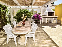 Villa accueillante "Les Canyes". Dans le quartier de Playa Almadrava, à 3 km du centre d'Els Poblets, à 200 m de la mer. A usage privé: terrain (clôturé) avec plantes, piscine (4 x 8 m, profondeur 120 - 180 cm, disponibilité saisonnière: 01.Jan. - 31.Dec.) avec marches intérieures. Douche extérieure, terrasse, barbecue. Supermarché 1 km, restaurant 500 m, arrêt du bus, plage de galets 200 m. Port plaisance 10 km, terrain de golf (18 trous) 9 km, centre équestre 3 km. Groupes de jeunes sur demande seulement.Interior