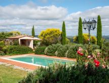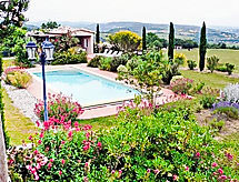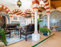 Maison 6 pièces 300 m2 sur 3 niveaux. Aménagement de style: grand séjour/salle à manger 120 m2 avec TV et chaînes de TV internationales (écran plat), DVD et air-conditionné. Sortie sur la terrasse. 1 chambre avec 2 lits. 1 chambre avec 1 grand-lit (140 cm), WC séparés et douche. 1 chambre avec 1 grand-lit (140 cm), WC séparés et douche. Cuisine ouverte (four, lave-vaisselle, 4 plaques vitrocéramiques, four micro-ondes, congélateur, cafetière électrique, Capsules pour machine à café (dolce gusto) (NON INCLUSES)) avec table pour les repas. Douche/WC. À l'étage supérieur: (escalier en colimaçon) 1 chambre avec 1 grand-lit (140 cm). 2ème étage: (escalier en colimaçon) salon. Chauffage électrique. Tonnelle 12 m2, situation sud. Meubles de terrasse, barbecue (portable), chaises longues (8). Superbe vue panoramique sur la vallée et les alentours. A disposition: lave-linge, fer à repasser, sèche-cheveux. Garage (2 Voitures), hauteur 225 cm, largeur 237 cm. Veuillez noter: maximum 1 animal/ chien autorisé. Détecteur de fumée. 3 fontaines murales et un puits de lumière dans le séjour. Mosaïques d'Alambra (de type arabe) dans toute la maison. Tables avec jeux de l'oie et petits chevaux en faïence. Les pièces situées en étage se trouvent dans la tour, le salon est accessible par la chambre à grand lit uniquement d'où nous avons une vue à 180 degrés sur la campagne environnante. Une plancha (au gaz) a été installée sur la terrasse prés de la cuisine.- Installations
