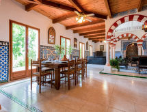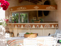 Le Hameau de Vendemies à 3 km de Limoux: Anciennes écuries comprenant un corps de bâtiment de plain pied et une tour de 2 étages, complétement restaurées en 2003-2004 à l'orientale (mosaïques d'Alambra), en position très isolée, sur une colline dominant les prés et champs. Maison individuelle "Les Ecuries". En-dehors de la localité, dans la verdure. En commun: terrain de pétanque. A usage privé: jardin naturel 5'000 m2 (clôturé), piscine rectangulaire (12 x 4 m, profondeur 150 - 150 cm, disponibilité saisonnière: 01.Jun. - 30.Sep.) avec marches intérieures. Terrasse (120 m2), place de parking sur le terrain, garage individuel. Magasins 3 km, magasin d'alimentation 3 km, restaurant 3 km, café 3 km. Attractions à proximité: Cité de Carcassonne 32 km. Veuillez noter: voiture recommandée. des chevaux, un âne et des moutons sont à proximité. Un réfrigérateur a été installé près de la piscine.Interior