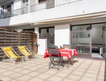 Studio 30 m2 au 1er étage, situation sud. Clair, aménagement moderne et de bon goût: séjour/chambre à coucher avec baie vitrée avec 1 divan-lit double (1 x 140 cm, longueur 190 cm), table pour les repas et TV (écran plat). Sortie sur la terrasse. Cuisine (four, lave-vaisselle, 4 plaques vitrocéramiques, grille-pain, bouilloire électrique, four micro-ondes, cafetière électrique). Sortie sur la terrasse. Douche/WC. Chauffage électrique. Grande terrasse 20 m2, situation sud et situation est. Meubles de terrasse, chaises longues. A disposition: lave-linge, fer à repasser, sèche-cheveux. Internet (Connexion WIFI, en sus). Place de parking (couvert). Veuillez noter: détecteur de fumée. 644830002928C- Caractéristiques de l'hébergement