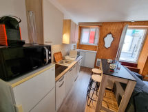 Apt 2 pièces 38 m2, au rez-de-chaussée, situation sud. Aménagement simple et agréable: séjour/salle à manger. 1 chambre avec 1 grand-lit (140 cm, longueur 190 cm). Cuisine ouverte (four, lave-vaisselle, 3 plaques à induction, grille-pain, bouilloire électrique, four micro-ondes, congélateur, cafetière électrique, Capsules pour machine à café (Nespresso) (NON INCLUSES)). Douche/WC. Chauffage électrique. A disposition: lave-linge, fer à repasser, sèche-cheveux. Internet (Connexion WIFI, en sus). Veuillez noter: logement côté rue. Logement non-fumeur pas de parking. 1 animal/ chien autorisé. Détecteur de fumée. Veuillez noter : 4 marches descendantes à l'entrée de l'appartement. Logement en demi sous-sol.- Installations