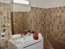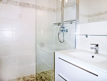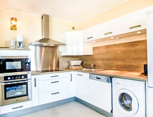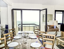 Apt 2 pièces 70 m2 sur 2 niveaux au 2ème étage. Entrée. Séjour/salle à manger avec TV (écran plat). Sortie sur le balcon. Grande cuisine ouverte (four, lave-vaisselle, 4 plaques vitrocéramiques, grille-pain, bouilloire électrique, four micro-ondes, congélateur, cafetière électrique). Douche/WC. À l'étage supérieur: chambre avec passage ouverte avec 3 lits (90 cm). 1 chambre avec 2 lits (90 cm). Sortie sur la terrasse. Bain/WC. Chauffage électrique. Balcon 2 m2, situation ouest et situation nord, terrasse 3 m2, situation sud et situation est. Très belle vue sur la mer. A disposition: lave-linge, fer à repasser. Internet (Connexion WIFI, gratuit). Veuillez noter: logement non-fumeur. Détecteur de fumée.- Caractéristiques de l'hébergement