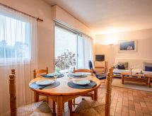 Apt 2 pièces 48 m2, au rez-de-chaussée. Séjour/salle à manger avec 1 divan-lit double et TV. Sortie sur la terrasse. 1 chambre avec 2 lits (90 cm). Coin cuisine (4 plaques de cuisson, four, four micro-ondes, congélateur). Salle de bains, WC séparé. Chauffage au gaz. Terrasse 10 m2. Meubles de terrasse, barbecue, chaises longues (2). A disposition: lave-linge. Internet (Connexion WIFI, gratuit). Place de parking No 8. Veuillez noter: TV seulement FR. Détecteur de fumée.- Caractéristiques de l'hébergement