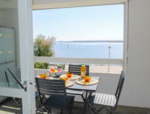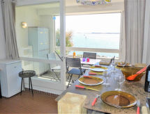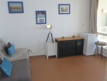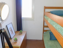 Apt 2 pièces 27 m2 au 1er étage. Séjour/salle à manger avec 1 divan-lit double (125 cm, longueur 188 cm), TV. 1 chambre d'enfants avec 1 x 2 lits superposés (80 cm). Cuisine (2 plaques de cuisson, four, four micro-ondes). Salle de bains, WC séparé. Pas de chauffage. Balcon, situation nord-est. Meubles de terrasse. Vue sur le port. A disposition: Internet (Connexion WIFI, en sus). Place de parking. Veuillez noter: maximum 1 animal/ chien autorisé. TV seulement FR. Détecteur de fumée.- Caractéristiques de l'hébergement