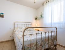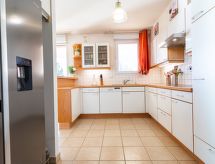 Apt 4 pièces 120 m2, rez-de-chaussée surélevé. Aménagement confortable et agréable: grand séjour/salle à manger avec TV (écran plat). Sortie sur la terrasse. 1 chambre avec 1 grand-lit (140 cm, longueur 190 cm), bain/WC et TV (écran plat). Sortie sur la terrasse. 2 chambres, chaque chambre avec: 1 grand-lit (140 cm, longueur 190 cm), TV (écran plat). Cuisine ouverte (four, lave-vaisselle, 4 plaques vitrocéramiques, four micro-ondes, congélateur, cafetière électrique). Douche/WC, WC séparé. Air-conditionné. Grande terrasse 100 m2, situation sud-est. Meubles de terrasse, barbecue électrique, chaises longues (3). Vue sur les montagnes et la piscine. A disposition: lave-linge, sèche-linge. Internet (Connexion WIFI, gratuit). Place de parking (1 Voiture). Veuillez noter: détecteur de fumée.- Caractéristiques de l'hébergement