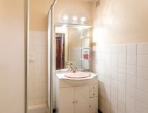 Apt 2 pièces 41 m2 au 1er étage. Aménagement confortable et rustique: séjour/salle à manger avec 1 divan-lit (110 cm, longueur 190 cm), TV (écran plat). Sortie sur le balcon. 1 chambre avec 1 grand-lit (140 cm, longueur 190 cm). Cuisine ouverte (four, lave-vaisselle, 2 plaques vitrocéramiques, grille-pain, bouilloire électrique, four micro-ondes, cafetière électrique). Douche/WC, bidet. Balcon 10 m2. Mobilier de balcon. A disposition: lave-linge, fer à repasser. Internet (Connexion WIFI, en sus). Veuillez noter: 1 animal/ chien de petite taille autorisé. TV seulement FR. Détecteur de fumée.- Installations