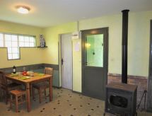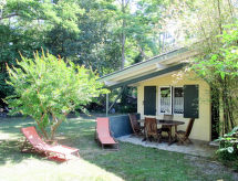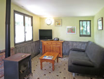 "Les Sables (QUE100)", maison 2 pièces 38 m2. Aménagement fonctionnel et plaisant: séjour/chambre à coucher avec 1 divan-lit double (140 cm, longueur 190 cm), poêle suédois (uniquement à titre de décoration), table pour les repas et TV (satellite) (écran plat). Sortie sur la terrasse. 1 chambre avec 1 grand-lit (140 cm, longueur 190 cm). Cuisine ouverte (four, lave-vaisselle, 3 feux, bouilloire électrique, four micro-ondes, congélateur, cafetière électrique). Douche, WC séparé. Pas de chauffage. Terrasse couverte. Meubles de terrasse, barbecue (portable), chaises longues (2). Vue sur la forêt. A disposition: lave-linge. Veuillez noter: maison non-fumeur. Maximum 3 animaux/ chiens autorisés. Détecteur de fumée.- Installations