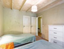 "Les Vendanges", apt 4 pièces 110 m2 sur 2 niveaux, rez-de-chaussée surélevé. Aménagement très confortable et agréable: salle à manger. 1 chambre avec 1 grand-lit (160 cm). 1 chambre avec 2 lits (90 cm). 1 chambre avec 1 grand-lit (140 cm). Cuisine ouverte (four, 4 plaques vitrocéramiques, four micro-ondes, congélateur). Douche/WC. À l'étage supérieur: galerie avec TV (écran plat). Chauffage électrique. Meubles de terrasse. Place de parking près de la maison. Veuillez noter: 1 animal/ chien autorisé. Détecteur de fumée. WIFI non disponible. Domaine viticole en activité.- Installations