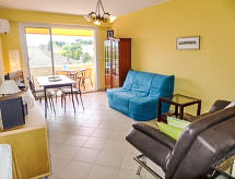 Apt 2 pièces 45 m2 au 3ème étage. Clair, aménagement agréable: séjour/salle à manger avec 1 divan-lit double (140 cm, longueur 190 cm), TV et chaînes de TV internationales (écran plat), chaîne stéréo, DVD et air-conditionné. Sortie sur la terrasse. 1 chambre avec 1 grand-lit (140 cm, longueur 190 cm). Cuisine ouverte (four, lave-vaisselle, 3 plaques à induction, grille-pain, bouilloire électrique, congélateur, cafetière électrique). Douche, WC séparé. Chauffage électrique. Terrasse 5 m2, couverte, situation sud-ouest. Meubles de terrasse. A disposition: lave-linge, fer à repasser. Internet (Connexion WIFI, en sus). Place de parking No 21. Veuillez noter: logement non-fumeur. Détecteur de fumée, sans ascenseur. 83112 000070 S5- Caractéristiques de l'hébergement