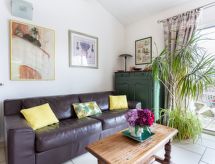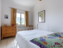 "Les Vignes (MBE100)", maison 3 pièces 65 m2. Clair, rénovée en 2002, aménagement fonctionnel: séjour/salle à manger avec table pour les repas et TV. Sortie sur la terrasse. 1 chambre avec 1 grand-lit. 1 chambre avec 2 lits. Petite cuisine ouverte (4 plaques de cuisson, lave-vaisselle, four micro-ondes, congélateur, cafetière électrique). Douche, WC séparé, double vasque. Chauffage au fuel. Terrasse. Meubles de terrasse, barbecue (portable). A disposition: lave-linge. Internet (Connexion WIFI, gratuit). Veuillez noter: logement non-fumeur.- Installations