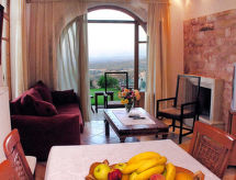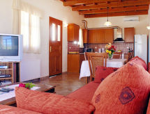 Belle villa confortable, individuelle "Lofos", de 2 étages, année de construction 2010, rénovée en 2017, environnée par les champs. Dans le quartier d'Agia Triada, situation tranquille, ensoleillée, à 5.9 km de la mer, à 5.9 km de la plage. A usage privé: grand jardin avec fleurs et arbres, pré, piscine ronde (36 m2, profondeur 150 cm, disponibilité saisonnière: 01.Avr. - 31.Oct.). Change de linge 2 fois par semaine. Changementde linge de toilette 2 fois par semaine. Nettoyage 2 fois par semaine. Place de parking près de la maison. Magasin d'alimentation 5.6 km, supermarché 5.6 km, restaurant 5.6 km, boulangerie 5.6 km, café 5.6 km, plage de sable "Adelianos Kampos" 5.9 km. Centre équestre 7.3 km. Attractions à proximité: Monastery of Arkadi 15 km, Eleftherna Archaeological Museum 21 km, Military Museum of Chromonastiri 15 km, Melidoni Cave 26 km, Rethymnon Old City 12 km. Veuillez noter: voiture recommandée. Adapté(e) aux familles, équipement pour bébés sur demande (inclus). Groupes de jeunes sur demande seulement. D’autres appartements sont également proposés à la location dans cette maison de vacances. La propriété référencée GR6506.16.1 est située sur le même terrain.Interior