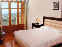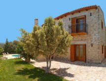 "Lofos", villa 4 pièces 130 m2 sur 2 niveaux. Spacieux et clair, aménagement confortable et agréable: séjour ouvert avec cheminée, TV (satellite), radio et lecteur CD. Sortie sur la terrasse, sur la piscine. 1 chambre double avec 2 lits. Cuisine ouverte (four, lave-vaisselle, four micro-ondes, cafetière électrique) avec table pour les repas. Douche/WC. Air-conditionné. À l'étage supérieur: (escalier sans rampe) 1 chambre avec 1 lit double et bain/WC. Sortie sur le balcon. 1 chambre avec 1 lit double et douche/WC. Sortie sur le balcon. Grand balcon, petit balcon terrasse. Barbecue, place pour s'asseoir. Belle vue sur les montagnes et les alentours. A disposition: lave-linge, coffre-fort, fer à repasser, sèche-cheveux. Internet (Connexion WIFI, gratuit). 1041 K910 0292 3800- Activités à proximité