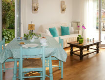 Maison à 2 apts "Lucia". À 3 km du centre d'Imperia, à 7 km du centre de Diano Marina. En commun: jardin 2'000 m2. Infrastructures de la Maison: vélo à disposition (en sus). Place de parking près de la maison. Magasin d'alimentation 3 km, supermarché 3 km, bar 3 km, gare ferroviaire 3 km, plage de sable 5 km plage de graviers 3 km.Interior