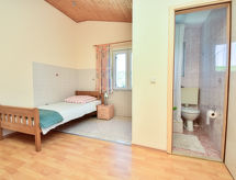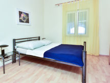 Apt 3 pièces 60 m2 au 2ème étage. Aménagement agréable: 1 chambre avec 1 grand-lit (160 cm, longueur 200 cm), table pour les repas, coin-cuisine et douche/WC. 1 chambre avec 1 lit double (2 x 100 cm, longueur 200 cm), douche/WC. Séjour/salle à manger avec TV (satellite) et air-conditionné. Cuisine ouverte (2 plaques de cuisson). Douche/WC. Air-conditionné (en sus). Terrasse 8 m2, couverte. Meubles de terrasse. Belle vue sur la mer. A disposition: Internet (Connexion WIFI, gratuit). 1 animal/ chien autorisé.- Installations