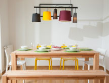 Maison 5 pièces 170 m2 sur 2 niveaux, situation nord. Aménagement de bon goût: séjour/salle à manger avec 1 divan-lit double (160 cm, longueur 200 cm), cheminée et TV (satellite) (écran plat), air-conditionné. Sortie sur la terrasse. 1 chambre avec 1 grand-lit (160 cm, longueur 200 cm), douche/WC. Cuisine ouverte (four, lave-vaisselle, 4 plaques vitrocéramiques, four micro-ondes, congélateur, cafetière électrique). WC séparé. À l'étage supérieur: 1 chambre avec 1 grand-lit (160 cm, longueur 200 cm), air-conditionné. Sortie sur la terrasse. 2 chambres, chaque chambre avec: 2 lits (90 cm, longueur 200 cm). Bain/WC. Terrasse 6 m2, couverte, terrasse 6 m2. Meubles de terrasse, chaises longues. Vue sur la piscine et les alentours. A disposition: coffre-fort, lit bébé, sèche-cheveux. Internet (Connexion WIFI, gratuit).- Activités à proximité