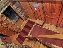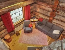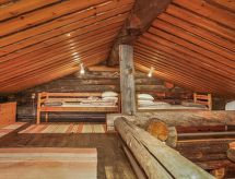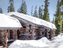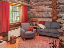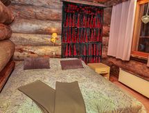 115 km au nord de Rovaniemi, Luostotunturi zone touristique Uittoluosto. Petit appartement mitoyen en bois rond, construit en 1989. Cuisine ouverte, 2 chambres avec chacune 2 lits (les lits de la deuxième chambre peuvent également faire mon lit double), sauna (cuisinière électrique), salle de bains / wc, wc séparés, mezzanine (surface au sol de 30 m² , escalier raide) 2 lits et 2 matelas. L'appartement dispose également d'un gril à gaz (usage extérieur). Pompe à chaleur air. Cabane en rondins dans un quartier calme, mais proche des services de Luosto. L'armoire de séchage est dans la salle de stockage. Services du programme et restaurants 1,5 - 2,0 km. Spa d'améthyste à 1,5 km. Ametistikaivos à 5 km.- Installations