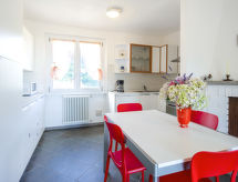 "Madal (GRV399)", apt 3 pièces 70 m2 au 2ème étage, situation sud-est. Rénové en 2016, aménagement agréable: séjour/salle à manger avec cheminée (uniquement à titre de décoration), table pour les repas et TV (satellite). Sortie sur le balcon, sur la terrasse. 1 chambre avec 1 grand-lit (160 cm). Sortie sur le balcon. 1 chambre avec 2 lits et 1 x 2 lits superposés. Sortie sur le balcon. Cuisine ouverte (four, lave-vaisselle, 4 feux, grille-pain, bouilloire électrique, four micro-ondes, congélateur, cafetière électrique). Douche/WC. Pas de chauffage. 2 balcons, terrasse couverte. Meubles de terrasse. Superbe vue panoramique sur le lac. A disposition: chaise haute pour enfant, lit bébé. Maximum 3 animaux/ chiens autorisés. CIR: 013249-CNI-00120- Installations