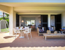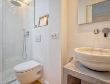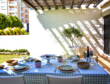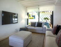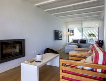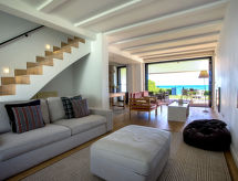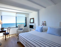 "Maison del Mar", maison jumelée 5 pièces 145 m2 sur 2 niveaux. Spacieux et clair, aménagement très agréable et de style: séjour/salle à manger avec Télévision numérique, air-conditionné et chauffage à air chaud. Sortie sur le jardinet. Grande cuisine ouverte (2 plaques de cuisson, four, lave-vaisselle, 2 plaques à induction, four micro-ondes, congélateur, cafetière électrique). Douche/WC. À l'étage supérieur: 1 chambre avec 1 grand-lit (220 cm, longueur 200 cm), douche/WC, air-conditionné et chauffage à air chaud. 1 chambre avec 1 grand-lit (220 cm, longueur 200 cm), douche/WC, air-conditionné et chauffage à air chaud. 1 chambre avec 1 grand-lit (160 cm, longueur 190 cm), douche/WC, air-conditionné et chauffage à air chaud. 1 chambre avec 1 lit (90 cm, longueur 190 cm), air-conditionné et chauffage à air chaud. Grande terrasse. Meubles de terrasse, chaises longues. Superbe vue panoramique sur la mer et les alentours. A disposition: lave-linge, sèche-linge, fer à repasser, sèche-cheveux. Internet (Connexion WIFI, gratuit). Place de parking (3 Voitures). Veuillez noter: TV seulement ES. VT-487646-A- Installations