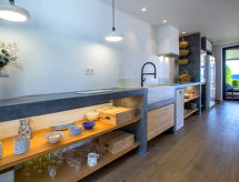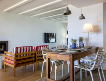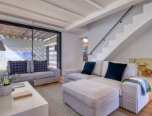Belle, grande maison jumelée confortable "Maison del Mar", de 2 étages. Dans le quartier d'El Muntanyar, à 10 m de la mer, à 10 m de la plage, accès direct à la plage. A usage privé: terrain (clôturé), beau jardin entretenu avec pelouse et arbres. Jardinet, pergola, meubles de jardin, place de parking (pour 3 voitures) sur le terrain. Supermarché 1.2 km, restaurant, bar 600 m, boulangerie 850 m, café 600 m, plage de sable "El Arenal" 700 m, plage de galets "Platja Cala Blanca" 1 km, plage de rochers "Platja Segon Muntanyar" 10 m. Ecole de surf 1.5 km, ecole de voile 1.5 km, tennis 1.5 km. Veuillez noter: non recommandé pour des enfants en bas âge. Le propriétaire n'accepte pas les groupes de jeunes.Interior