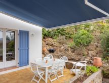 "Les Hespérides", maison 4 pièces 110 m2 sur 2 niveaux. Clair, aménagement à l'ancienne: séjour/salle à manger avec TV (écran plat), DVD. Sortie sur la terrasse. 1 chambre avec 2 lits (90 cm, longueur 190 cm), air-conditionné. Cuisine (four, lave-vaisselle, 4 feux, grille-pain, bouilloire électrique, four micro-ondes, congélateur, cafetière électrique). Salle de bains, WC séparé. Chauffage au fuel. À l'étage supérieur: 1 chambre avec 1 grand-lit (140 cm, longueur 190 cm) (longueur 190 cm), air-conditionné. Sortie sur la terrasse. 1 chambre avec 2 lits (90 cm, longueur 190 cm), chauffage électrique et air-conditionné. Sortie sur la terrasse. Salle de bains, WC séparé. Terrasse 50 m2, situation sud et situation ouest. Meubles de terrasse, barbecue électrique, chaises longues (6). Vue sur la mer et le port. A disposition: lave-linge, fer à repasser, sèche-cheveux. Internet (Connexion WIFI, gratuit). Place de parking (2 Voitures). Veuillez noter: adapté(e) aux familles. Maison non-fumeur. Maximum 1 animal/ chien autorisé. Détecteur de fumée. 8307000140521- Installations