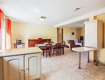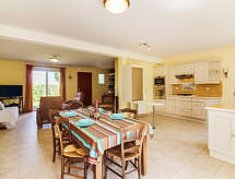 Pleurtuit: Maison individuelle "Maison Les Hortensias", année de construction 2005. Dans la localité, à 1 km du centre, dans un quartier résidentiel, à 5.2 km de la mer, à 5.2 km de la plage, orientée sud. A usage privé: jardin (clôturé) 700 m2, place de parking près de la maison. Magasins, magasin d'alimentation 550 m, supermarché 800 m, centre commercial 3.9 km, restaurant 750 m, bar 800 m, boulangerie 850 m, café 800 m, centre à 10 minutes à pieds, gare ferroviaire "SNCF de Saint Malo" 12 km, ferry-boat "Saint-Malo" 13.3 km, plage de sable "Le Prieuré" 5 km, piscine couverte 6 km, centre thermal "Thalassa de Dinard" 8.5 km. Port plaisance 5 km, terrain de golf (9 trous) 4 km, ecole de voile 5 km, tennis couvert 650 m, golf miniature 5 km, centre équestre 4.5 km, centre sportif 1 km. Attractions à proximité: Dinard 5 km, Dinan Cité Médiévale 19 km, Saint Briac 10 km, Saint Malo et ses remparts 15 km, Cap Fréhel et Fort la Latte 36 km, Le Mont Saint-Michel 60 km. La remise des clés a lieu à l’agence Interhome de Dinard, 7 km.Interior