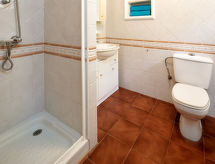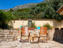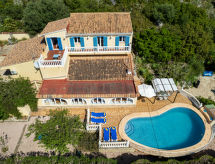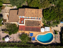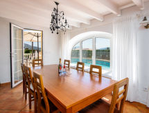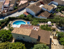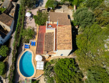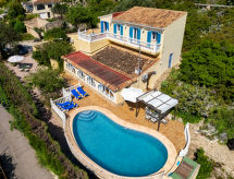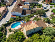 "Villa Mandana", villa 5 pièces 250 m2. Aménagement confortable et agréable: séjour/salle à manger avec TV (satellite), Télévision numérique, air-conditionné et chauffage à air chaud. Sortie sur la terrasse, sur la piscine. 1 chambre avec 1 grand-lit (150 cm, longueur 190 cm), douche/bidet/WC, air-conditionné et chauffage à air chaud. Sortie sur la terrasse. Bureau avec douche/WC. Grande cuisine ouverte (5 plaques de cuisson, four, lave-vaisselle, grille-pain, four micro-ondes, congélateur, cafetière électrique). À l'étage supérieur: 1 chambre avec 1 grand-lit (135 cm, longueur 190 cm), air-conditionné, ventilateur et chauffage à air chaud. Sortie sur la terrasse. 1 chambre avec 2 lits (100 cm, longueur 200 cm), air-conditionné et chauffage à air chaud. Sortie sur la terrasse. Douche/bidet/WC. Grande terrasse, jardinet. Meubles de terrasse, barbecue, chaises longues. A disposition: lave-linge, fer à repasser, chaise haute pour enfant, lit bébé, sèche-cheveux. Internet (Connexion Modem Haut Débit (type ADSL), gratuit). R000000001- Installations