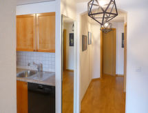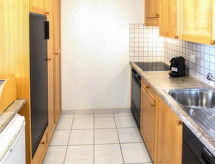Apt 3 pièces 80 m2 au 1er étage. Clair, aménagement moderne: séjour/salle à manger avec cheminée, TV (câblée) et écran plat. Sortie sur le balcon, orientée sud. 1 chambre avec 1 grand-lit (160 cm, longueur 200 cm), bain/WC. Sortie sur la terrasse, orientée nord. 1 chambre avec 2 lits (80 cm, longueur 190 cm). Sortie sur la terrasse, orientée nord. Cuisine ouverte (four, lave-vaisselle, 4 plaques vitrocéramiques, grille-pain, bouilloire électrique, four micro-ondes, cafetière électrique, Capsules pour machine à café (NESPRESSO) (NON INCLUSES), appareil à raclette, service à fondue (fondue au fromage)). Douche/WC. Balcon 7 m2, situation sud. Mobilier de balcon, chaises longues (2). Belle vue sur les montagnes et les alentours. A disposition: fer à repasser, sèche-cheveux. Internet (Connexion WIFI, gratuit). Veuillez noter: logement non-fumeur. Maximum 1 animal/ chien autorisé.- Caractéristiques de l'hébergement