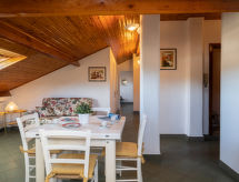 "Mansarda Elisabetta", appartement de standing au dernier étage d'un immeuble 3 pièces 100 m2, sous le toit. Clair, aménagement fonctionnel: séjour/salle à manger avec fenêtre sous le toit avec TV. 1 chambre double avec fenêtre sous le toit. 1 chambre avec 1 lit (90 cm, longueur 200 cm). Coin cuisine (4 feux, grille-pain, bouilloire électrique, four micro-ondes). Bain/bidet/WC. Chauffage au gaz. Possibilité de chauffage uniquement du 01.11. au 30.04. A disposition: lit bébé jusqu'à 2 ans. Internet (Connexion WIFI, gratuit). Veuillez noter: réfrigérateur sans compartiment congélateur. CITRA:008027-LT-0040- Installations