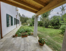 "Maria", maison 3 pièces 70 m2, au rez-de-chaussée. Aménagement simple et plaisant: séjour/salle à manger avec cheminée (uniquement à titre de décoration), TV et ventilateur. 1 chambre double. 1 chambre, sans armoire avec 2 lits. Cuisine (four, 4 feux, cafetière électrique). Douche/bidet/WC. Pas de chauffage. A disposition: lave-linge, chaise haute pour enfant, lit bébé (en sus). Place de parking près de la maison. Maximum 2 animaux/ chiens autorisés.- Installations