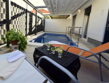 Petite résidence. À 500 m du centre de Trogir, situation tranquille, ensoleillée, à 400 m de la mer, à 900 m de la plage, dans une impasse. A usage privé: piscine rectangulaire (4 x 3 m, profondeur 150 cm, disponibilité saisonnière: 01.Mai. - 01.Oct. horaires d'ouverture de la piscine: 08:00-22:00) avec marches intérieures. Infrastructures de la Maison: accès internet. Place de parking près de la maison. Magasins 500 m, supermarché 400 m, restaurant, café 500 m, plage de graviers 900 m. Terrain de golf 30 km, tennis 4 km. Veuillez noter: place d'amarrage privée (en sus) sur demande. Aéroport 6 km de la maison. Environnement très sensible au bruit. Silence et bonne tenue exigés. Piscine hydromassage.Interior