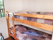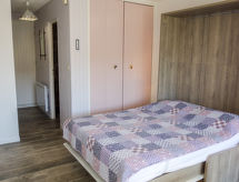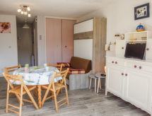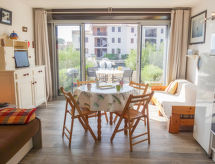 Apt 2 pièces 30 m2, au rez-de-chaussée. Séjour/salle à manger avec 1 grand-lit rabattable (140 cm, longueur 190 cm), TV (écran plat). Sortie sur la terrasse. Cabine avec 1 x 2 lits superposés (90 cm, longueur 190 cm). Coin cuisine (2 plaques de cuisson, four, four micro-ondes, cafetière électrique). Douche, WC séparé. Terrasse, situation sud. Meubles de terrasse, barbecue électrique. Vue sur Lagune. A disposition: lave-linge. Internet (Connexion WIFI, en sus). Place de parking. Veuillez noter: maximum 1 animal/ chien autorisé. Détecteur de fumée.- Caractéristiques de l'hébergement