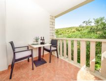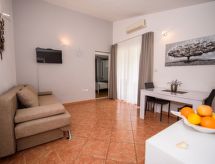 Apt 2 pièces 32 m2 au 2ème étage. Aménagement agréable et de bon goût: séjour/salle à manger avec 1 divan-lit double (160 cm, longueur 200 cm), TV (satellite) (écran plat), air-conditionné. Sortie sur le balcon. 1 chambre avec 1 grand-lit (160 cm, longueur 200 cm). Cuisine ouverte (2 plaques vitrocéramiques, four micro-ondes, congélateur, cafetière électrique). Douche/WC. Air-conditionné (en sus). Balcon 6 m2. Meubles de terrasse. A disposition: Internet (Connexion WIFI, en sus).- Installations