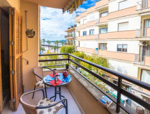 "Mariners 2", apt 4 pièces 110 m2. Spacieux et clair, aménagement confortable et plaisant: séjour/salle à manger avec baie vitrée avec cheminée, table pour les repas, Télévision numérique, écran plat, air-conditionné, ventilateur et chauffage à air chaud. Sortie sur la loggia. 1 grande chambre double avec baie vitrée avec air-conditionné, ventilateur et chauffage à air chaud. Sortie sur la loggia. 1 grande chambre double avec baie vitrée avec 2 lits (90 cm, longueur 190 cm), air-conditionné, ventilateur et chauffage à air chaud. Sortie sur la loggia. 1 grande chambre double avec baie vitrée avec 2 lits (90 cm, longueur 190 cm). Cuisine (four, lave-vaisselle, 3 plaques vitrocéramiques, four micro-ondes, congélateur, cafetière électrique). 2 bains/douches/WC. Balcon 10 m2. Mobilier de balcon, barbecue. Vue partielle sur la mer et les montagnes. A disposition: lave-linge, fer à repasser, sèche-cheveux. Internet (Connexion WIFI, gratuit). Adapté(e) aux familles. L26E220792019- Activités à proximité